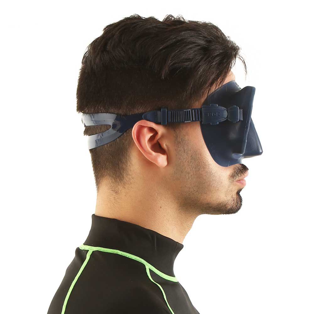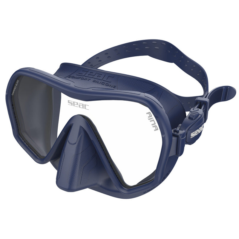 Seac Ajna is a single lens diving mask manufactured with frameless technology. This technology places the lens closer to the eyes, increasing the field of view.